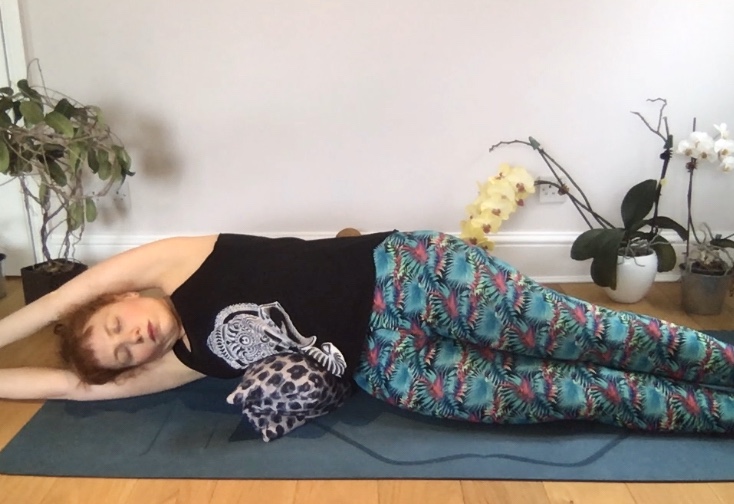 - When you are ready, gently roll onto your belly for a breath and then repeat on the other side.