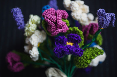 Crochet is definitely better for flowers than knitting. Especially for anyone making as many flowers, crochet is so much faster and produces a much tighter/stiffer flower. The only one that was worth doing as a knitted flower was the lavender.