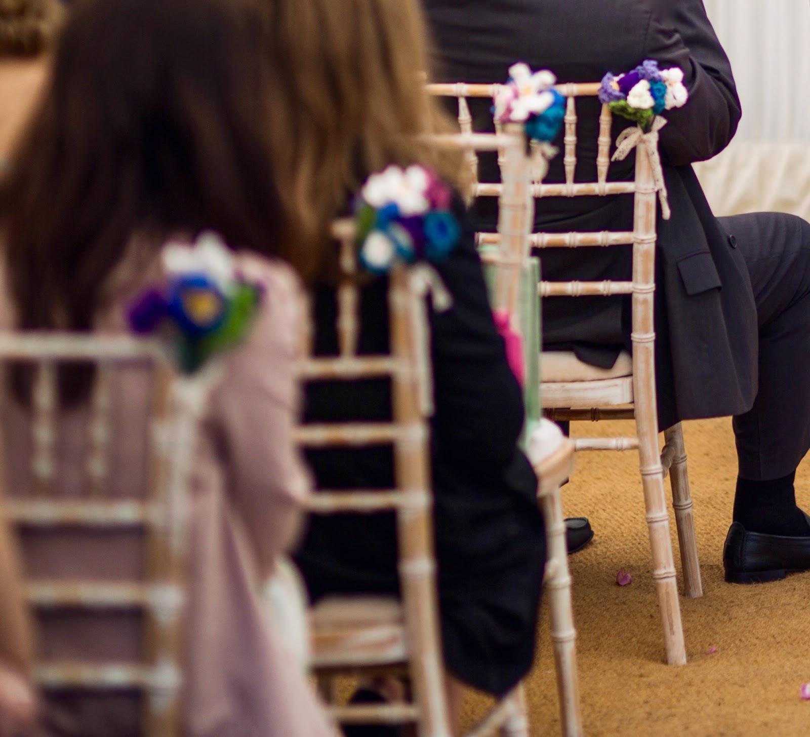 If anyone reading this is thinking about it, my advice is do it, even if just for the bouquet. Yes, there was cursing, yes I had to go to the pub with my yarn to stay on schedule, but I now have a beautiful bouquet in my living room that will always remind me of my wedding day. Plus, all the bouquets disappeared from the chairs as soon as the ceremony was over, which made it worth the effort!