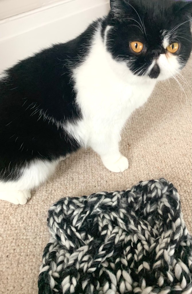 If you don’t care about knitting, then I will spare you and tell you, you can stop reading here. Maybe scroll down and look at the photos. Maybe. Because the rest of this post is the pattern for the kitty cowl. Enjoy!